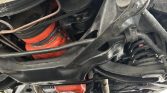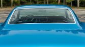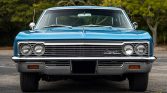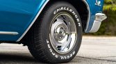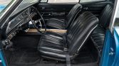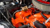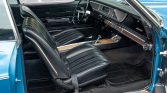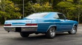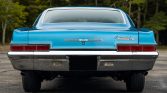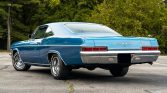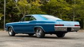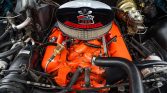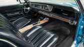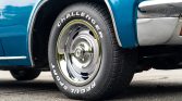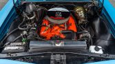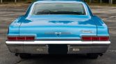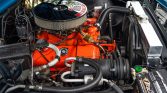 The two-spoke steering wheel fronts a horizontal 120-mph speedometer and a fuel-level gauge. AutoMeter readouts for water temperature and oil pressure are mounted in the center console. The Turbo-Jet 396ci V8 is equipped with a four-barrel carburetor and an aluminum radiator. Spent gases flow through a dual exhaust system. Power is routed to the rear wheels through a three-speed TH400 automatic transmission and a 10-bolt rear axle.