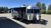 The travel trailer is additionally outfitted with stabilizer jacks and a 3k-watt Victron power inverter with a smart battery monitor along with a 4k-kW Honda generator, lithium-ion batteries, and a 400-watt solar power kit with a Victron charge controller. Approximate trailer dimensions are 31′ long, 8’6″ wide, and 9’8″ high.