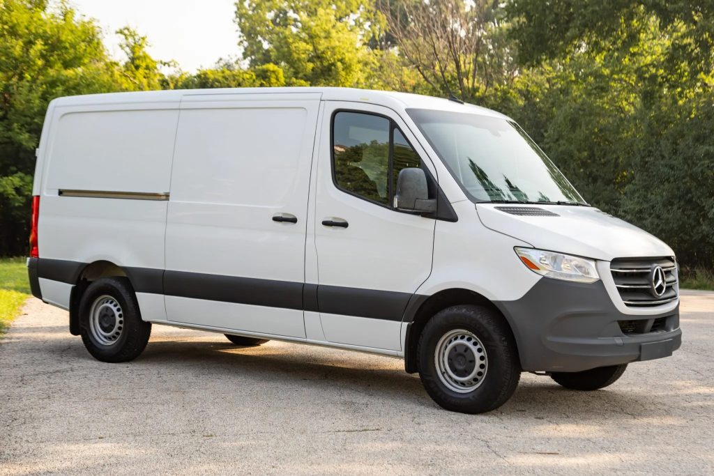 The van is finished in white and features a Mercedes-Benz grille and badging, a sliding…