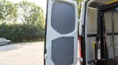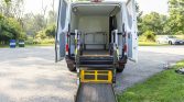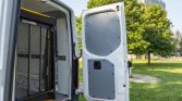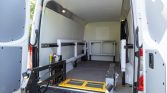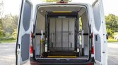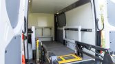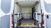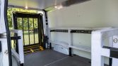 This 2020 Freightliner Sprinter 2500 is finished in white over black cloth upholstery and is powered by a 3.0-liter turbodiesel V6 linked with a seven-speed automatic transmission. The van has been retrofitted with rear cargo area insulation, an auxiliary heater, and a BraunAbility rear lift. Additional equipment includes 16″ steel wheels, cruise control, automatic climate control, and a stereo with an auxiliary input.